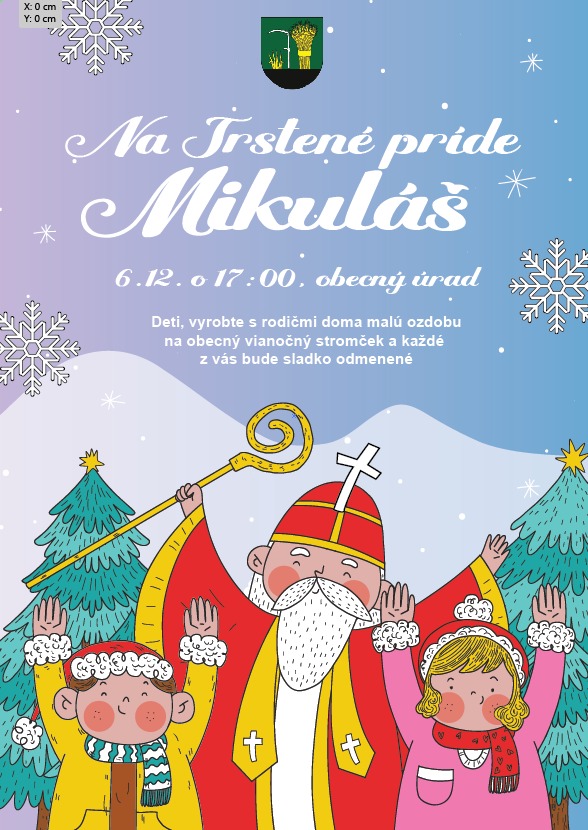 Milé deti, príďte v sobotu o 17:00 k Obecnému úradu privítať Mikuláša. Pripravte si ozdobu na vianočný stromček a Mikuláš vám dá sladký balíček.